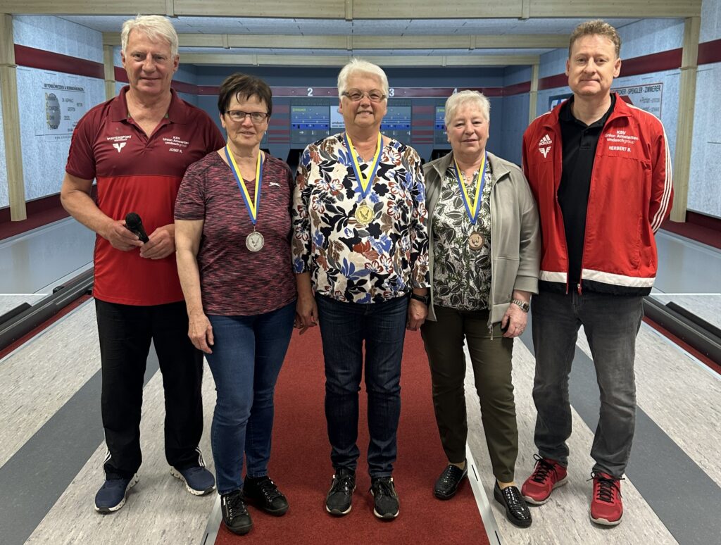 Bei gleichem Endergebnis entschied bei den Damen in der Klasse Ü60 die höhere Kegelanzahl beim Abräumen über die Plätze 1und 2.